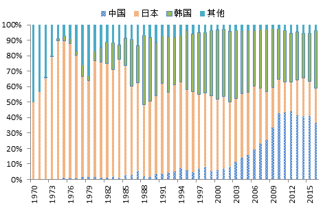 图3中日韩造船完工量全球份额